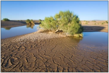 В большинстве случаев все крупные реки мира начинаются довольно далеко от пустынь. Если и получается так, что ее русло пересекает данный участок территории, выходит так, что она питает влагой только узкую часть прилегающего к ней берега. Там, где русла рек пересохли по ряду причин, образовывается не что иное, как пустыня. В сезон дождей эти русла наполняются водой, их берега и близлежащие районы оживают, зеленеют и расцветают, но это кратковременно, как правило, не более одной или двух недель в году. Затем зелень засыхает, русла пересыхают и трескаются. Все становится на круги своя, то есть, безжизненно и сухо.